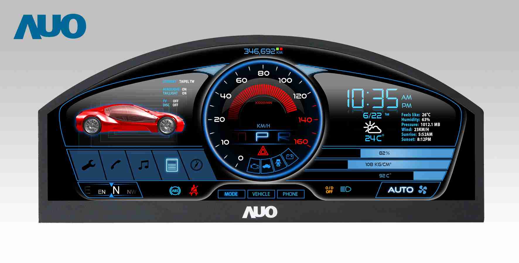 888.BY集团电子游戏 12.3吋超高解析异型切割车用面板,,拥有流线外观及精细画质